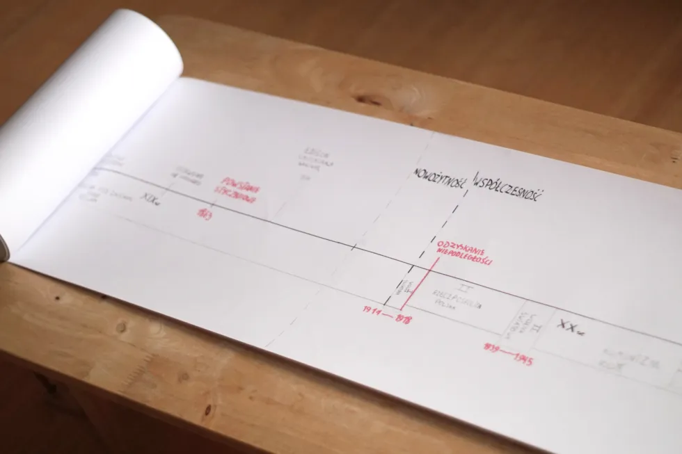 Tworzenie osi czasu nie jest niczym odkrywczym w środowisku edukacji domowej, jednak osie czasu, które widziałem do tej pory na zdjęciach były wykonane najczęściej z papieru o dosyć małej gramaturze i były składane.