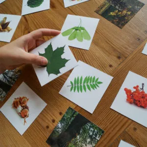 Jeden z dni spędziłyśmy u babci, wzięłyśmy ze sobą karty z serii Edukacyjny Egmont „Biblioteczka Montessori. Przyroda„, a także drzewa liściaste z magazynu Kukumag. Przy okazji odwiedzin, mogła powtórzyć wiedzę z wakacyjnych wypraw przyrodniczych, także opowiadając babci gdzie spędziła wakacje.